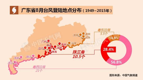 8月登陸廣東的臺風(fēng)中,超過一半是在粵西沿海登陸。