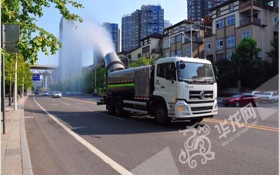重慶街頭現多功能抑塵車 車尾似"大炮"發射