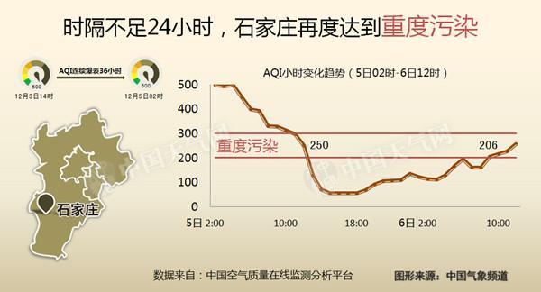 昨天,隨著冷空氣擴散南下,北方部分地區霾天氣反彈,以省會城市石家莊為例,時隔不足24小時,空氣質量再度達到重度污染。