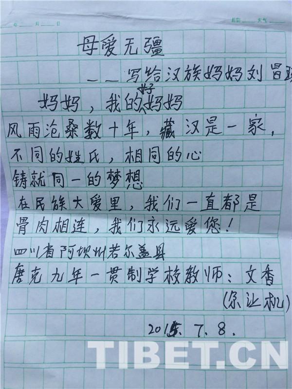 △文香(尕讓機)給漢族媽媽劉昌珍寫的信。