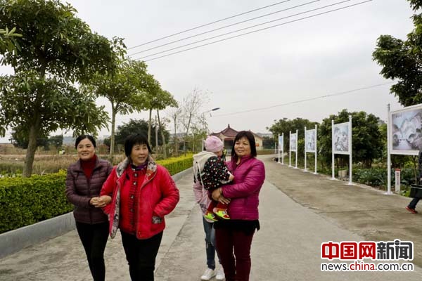 王老師(左)和她的好姐妹們在村里散步。中國網(wǎng)記者 金慧慧 攝