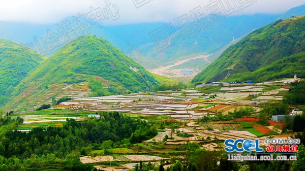 圖為甘洛縣海棠鎮地膜玉米套種馬鈴薯一角