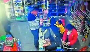 犯罪嫌疑人在超市外被抓獲。(視頻截圖)