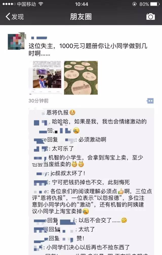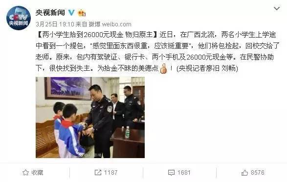 (原標題:失主回贈撿錢小學生1000元習題冊!?這張圖刷屏了!然而央視微博卻回應… )