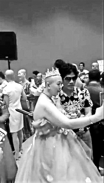 北青報記者找到了這個視頻,視頻長度45秒,場合是在一個酒店內,視頻中的男女大都剃著光頭,身著各種顏色的禮服,他們大都忙著自拍或者跟人拍照,仔細聽的話可以聽到視頻里有人在高聲呼喊著“一統天下”。在視頻的第12秒,有人舉著一塊紅色的牌子,上面寫著的是“五行幣”的字樣。