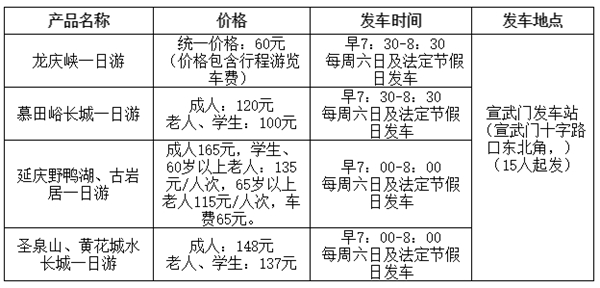 同時,旅游集散中心本著“豐富旅游產品,方便游客出行”的思路,重點開發、優化了適宜游客出游的其它4條京郊游新線路供廣大游客選擇,發車地點位于宣武門十字路口東北角。