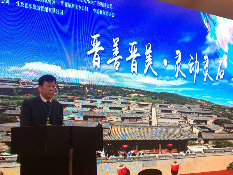 圖1、“晉善晉美+靈動靈石”旅游(北京)推介會在京舉行,靈石縣委副書記、縣長劉旋向大會致辭。