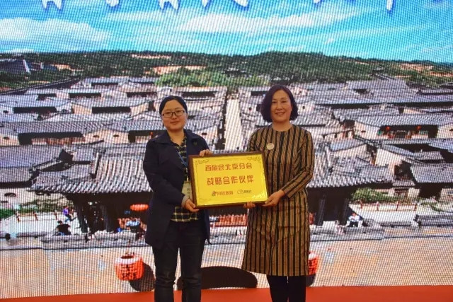 圖4、靈石縣文物旅游局局長秦彩焰接受同程旅游“百旅會北京分會戰略合作目的地”授牌。