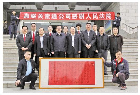 4月6日,執行申請人嘉峪關某公司為嘉峪關中院送去了裝裱一新的感謝信,交給該院院長茹作勛。
