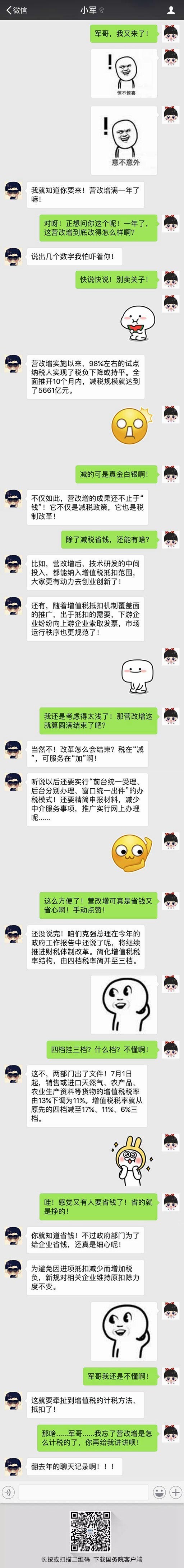 到今年5月1日,營改增試點全面推開已整整一年。一年來,營改增減稅效應如何?今后又如何深入推進這項改革?一無所知的小白又來請教稅務達人小軍了!一起看看他們又聊了啥?