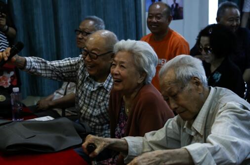 在互動環節中,管宗祥先生的夫人、著名表演藝術家于黛琴帶領的北影社區老年朗誦隊進行了精彩的朗誦表演。這支由退休老人組成的朗誦隊,在于老師的辛勤指導下,成為了一支經常活躍在社區和各種公益活動的出色的朗誦團體。此后,于老師一首聲情并茂、感人至深的詩朗誦,得到觀眾熱烈的掌聲。