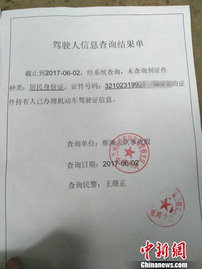 經上網核查嫌疑人為無照駕駛。 交警部門提供 攝