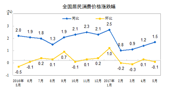 (原標題:2017年5月份居民消費價格同比上漲1.5%)