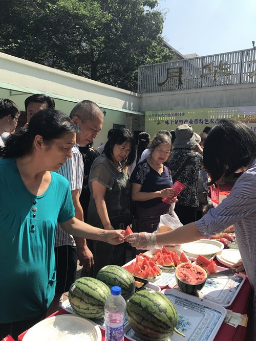 本次活動以產業(yè)帶特色農產品“大興西瓜”為主題,展示各種品牌的大興西瓜,包括由高科技技術培育的西瓜。從西瓜的外形、味道及所在的營養(yǎng)都有精彩呈現(xiàn),展現(xiàn)了現(xiàn)代農業(yè)的高新技術,并讓市民們體驗到北京都市型現(xiàn)代農業(yè)發(fā)展的階段性成果。