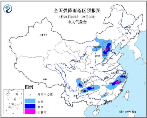 中央氣象臺(tái)6月21日18時(shí)發(fā)布暴雨黃色預(yù)警:預(yù)計(jì),6月21日20時(shí)至22日20時(shí),山西北部、河北大部、北京、天津西部、內(nèi)蒙古中部偏南等地的部分地區(qū)有大到暴雨,其中北京西南部、河北中部等地局地有大暴雨(100~140毫米)。
