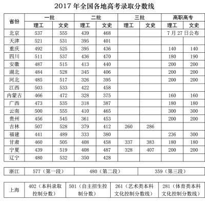 截至6月23日20時,北京、上海、天津、浙江、河北、吉林、甘肅、福建、遼寧、四川、廣西、云南、貴州、重慶、安徽、寧夏、江西、湖北、內蒙古等省區市公布了2017年考生高考成績及高招各批次錄取控制分數線。其中,上海、浙江兩地今年迎來高考綜合改革后的首次“新高考”,備受社會各界關注。