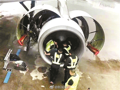 北京青年報(bào)記者27日下午4時(shí)許查詢發(fā)現(xiàn),原本計(jì)劃當(dāng)天中午12點(diǎn)45分起飛的航班依舊處于延誤狀態(tài)。而從許多乘客傳來(lái)的照片中可以看到,飛機(jī)旁停放了多輛包括警車在內(nèi)的車輛,飛機(jī)左翼下方的發(fā)動(dòng)機(jī)蓋處于打開狀態(tài),有多位工作人員正在對(duì)發(fā)動(dòng)機(jī)進(jìn)行檢查維修。
