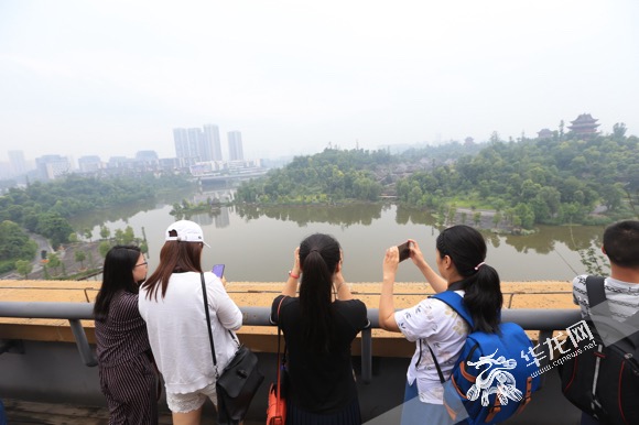記者們被璧山區秀湖公園的美景所吸引。記者 李文科 攝