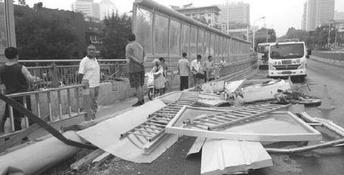 爆炸還波及附近高架橋上的屏障受損。齊魯晚報記者戚云雷攝