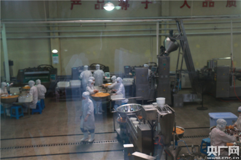 記者參觀科沁萬佳食品有限公司的生產(chǎn)流水線。(央廣網(wǎng)記者 吳海波 攝)