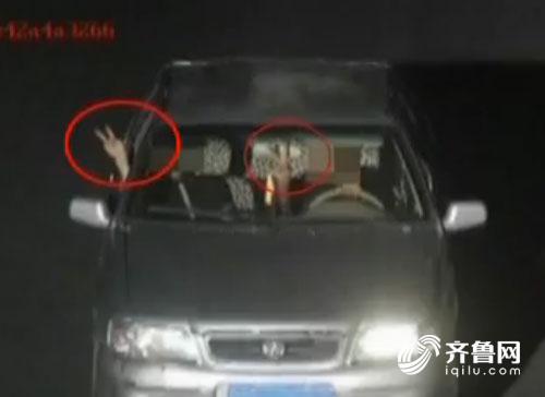 司機面對攝像頭比剪刀手