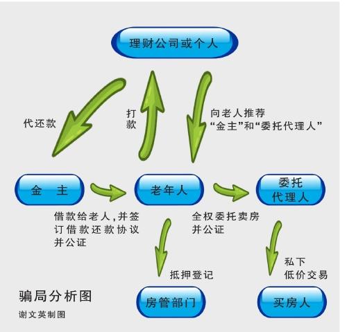 北京老年人維權工作站律師武婕介紹說,通過對一系列欺詐案件梳理后發現,廣某都是以“澳洲博彩業”或“以房養老”等項目名義,吸引老年人向其借款或投資,并向老人承諾月息5%或8%的高額回報。因為老年人沒有過多存款,廣某便主動介紹中間人阿龍為老年人聯系金主。阿龍稱,金主借款給老年人,需要將老年人的房產作抵押,但手續非常簡便,而且不會有任何風險。廣某也稱,不僅沒有風險,而且還款義務由其承擔,老年人在整個過程中,只需要協助簽一些文件即可,剩下的就是坐等拿錢。
