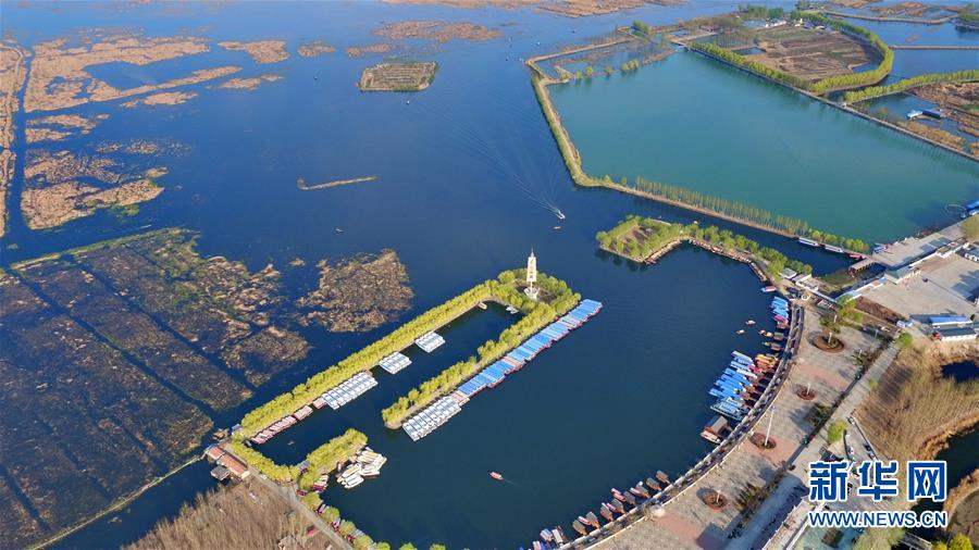 俯瞰河北省安新縣境內的白洋淀(3月31日攝)。 新華社記者 楊世堯 攝
