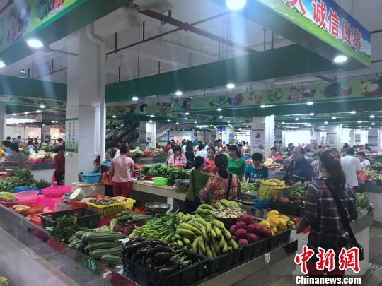 海口市民生活未受降雨影響,農(nóng)貿(mào)市場(chǎng)個(gè)別蔬菜出現(xiàn)小幅上漲。 王子謙 攝