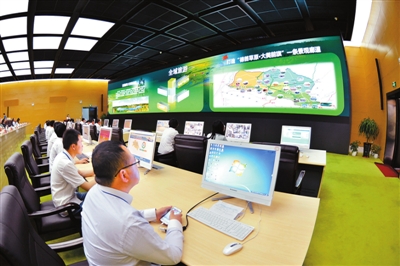 鄂爾多斯市鄂托克前旗大數據中心,工作人員正在認真盯盤。該中心覆蓋全旗的4個鎮區和18個集中居住的農牧社區,以大數據應用引領各項事業統籌發展。內蒙古客戶端記者金泉 攝