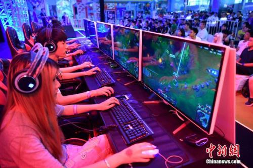 資料圖:2017中國·石家莊第十二屆國際動漫博覽交易會的電競現場,一場《英雄聯盟》比賽拉開“戰幕”。 中新社記者 翟羽佳 攝