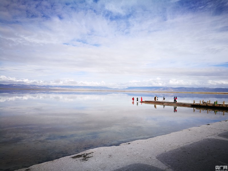 央廣網西寧9月4日消息(記者 林霞)9月3日,全國臺聯“一帶一路”兩岸記者參訪團走進青海,來到“天空之境”——茶卡鹽湖。茶卡鹽湖位于青海省海西蒙古族藏族自治州烏蘭縣茶卡鎮。被國家旅游地理雜志評為“人一生必去的55個地方”之一。 “茶卡”是藏語,意即鹽池,也就是青鹽的海。在這里,遠處水與天已沒有明顯的界限,湖盡頭與天相連,天是湖的一部分,湖是天的補充。