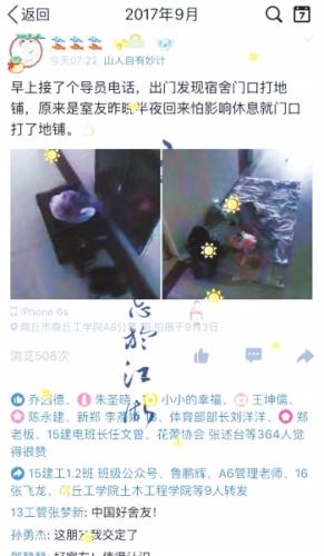 近日,一則關于商丘工學院“學生返校晚,怕打擾室友,門口打地鋪”的新聞,在朋友圈大量轉發,上面配有幾張打地鋪的圖片。