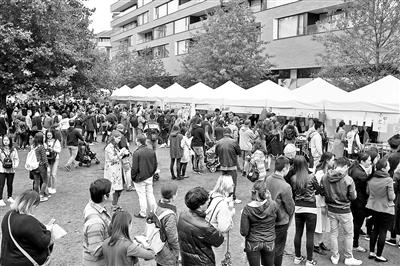英國倫敦,第三屆英國中國美食節現場,不少攤位前都排了長隊。 圖片來源:重慶晨報