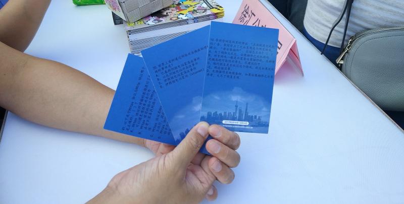徐匯公安分局在港匯恒隆廣場舉行網絡安全知識問答活動,圖為記者隨機抽取的三張問題卡