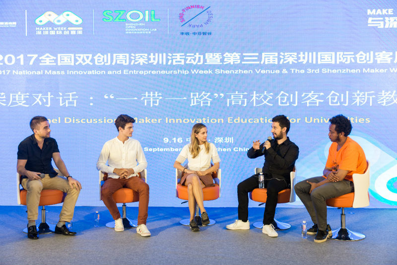 峰會中,埃塞俄比亞iCog實驗室項目經理瑞依·策加耶、Promperu MarcaPeru實驗室負責人維克多·古斯塔沃·弗蘭德、MakerTour創客空間/實驗室市場開發者盧卡斯·格拉凡、MakerTour創客空間/實驗室市場開發者瑪麗·勒夫羅以國際化的視野、互聯網+的思維,圍繞“一帶一路”高校創客創新教育這一話題就如何提高創客、高校院所及學生的創新精神,培育智能硬件創新創業生態環境等進行分享交流。