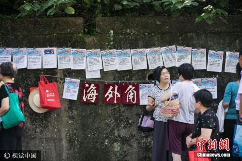 資料圖:2017年7月15日,杭州一條馬路兩邊,數(shù)百名大伯大媽前來(lái)“相親”,現(xiàn)場(chǎng)還特別設(shè)置了海外學(xué)子的專區(qū),貼著的大部分都是70后80后年輕人的信息。 視覺(jué)中國(guó)