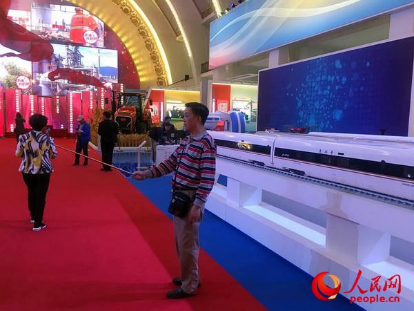 黨的十八大以來(lái),中國(guó)新開(kāi)通高鐵1.36萬(wàn)公里,高鐵營(yíng)業(yè)里程突破2.2萬(wàn)公里,穩(wěn)居全球榜首。成就展上,“復(fù)興號(hào)”動(dòng)車組模型如同一條銀色的蛟龍,引來(lái)很多觀眾合影留念。