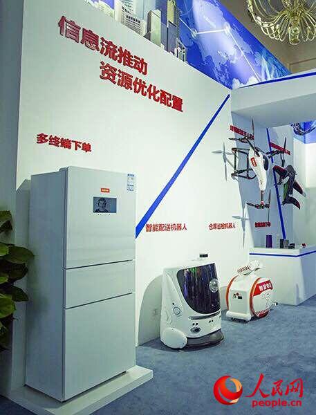在展會(huì)現(xiàn)場(chǎng),京東工作人員向觀眾展示了京東智慧生態(tài)鏈下的智能生活場(chǎng)景:凌晨2點(diǎn),消費(fèi)者打開(kāi)家中的美的智能冰箱,發(fā)現(xiàn)冰箱空空如也,便在冰箱上下單,終端口1秒內(nèi)便完成人工智能推薦,消費(fèi)者很快便選定下單。而早在下單10小時(shí)之前,京東已經(jīng)通過(guò)大數(shù)據(jù)監(jiān)控預(yù)測(cè)了消費(fèi)者購(gòu)買意向,提前完成了商品調(diào)撥。因此,下單后5秒鐘,京東的無(wú)人倉(cāng)內(nèi)便開(kāi)始運(yùn)轉(zhuǎn):自動(dòng)叉車負(fù)責(zé)搬運(yùn)貨物,立體庫(kù)穿梭車自動(dòng)揀貨,AGV自動(dòng)搬運(yùn)揀貨,六軸機(jī)器人自動(dòng)碼垛,全自動(dòng)分揀機(jī)器人分揀貨物……下單后2小時(shí),消費(fèi)者購(gòu)買的產(chǎn)品已經(jīng)送往配送站,同時(shí)利用大數(shù)據(jù)實(shí)現(xiàn)了路徑優(yōu)化和實(shí)時(shí)監(jiān)測(cè)。下單后4小時(shí),無(wú)人機(jī)起飛,貨物開(kāi)始發(fā)往目的地。隨后無(wú)人機(jī)出動(dòng),負(fù)責(zé)最后一公里的運(yùn)輸,成功將貨物送到消費(fèi)者手中。