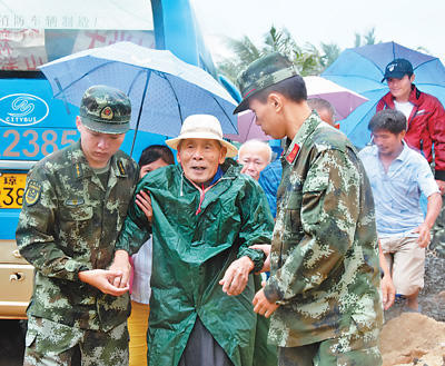 圖為15日,海口組織群眾轉移。海口市委宣傳部供圖