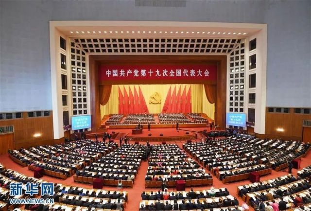 10月18日,中國共產黨第十九次全國代表大會在北京人民大會堂隆重開幕。這是大會會場。 新華社記者 饒愛民 攝
