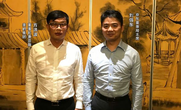 京東集團董事局主席兼首席執行官劉強東與美的集團董事長兼總裁方洪波合影
