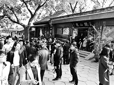 香山公園售票處排隊買票的人群