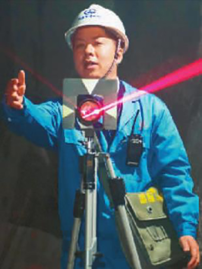 白芝勇在陜西省韓城市龍門鎮蒙華鐵路集義隧道進行施工測量。新華社發