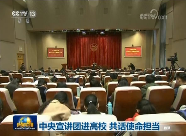 央視網(wǎng)消息(新聞聯(lián)播):連日來,學(xué)習(xí)貫徹黨的十九大精神中央宣講團走進高校,通過透徹深入的宣講、貼近實際的解讀,讓黨的十九大精神落地生根。