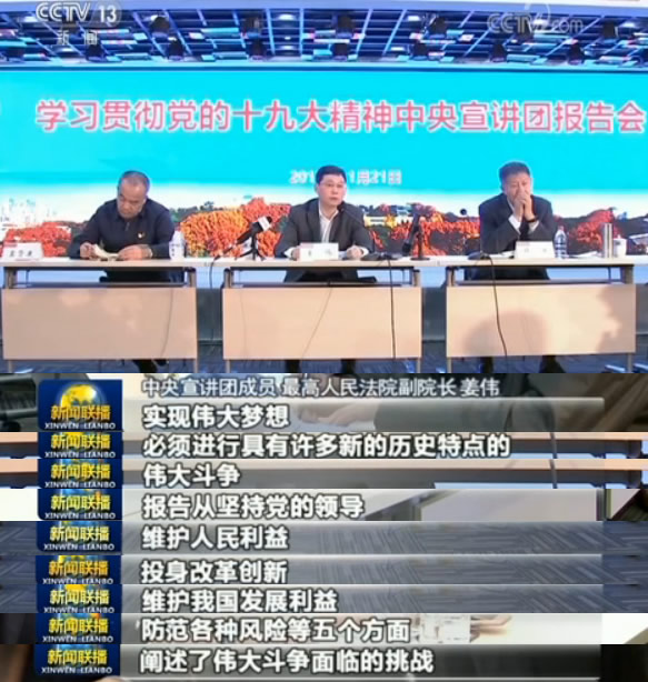 在武漢大學(xué),中央宣講團成員、最高人民法院副院長姜偉圍繞黨的十九大的主要成果等主題,為師生代表宣講。