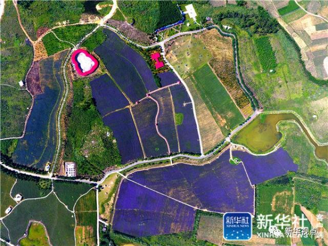 這是5月26日航拍的廣西忻城縣薰衣草莊園。通過農業、文化、旅游的深度融合,從農業供給側改革上精準發力,忻城走出了一條以農業產業創新帶動第三產業發展的道路。新華社記者 黃孝邦 攝