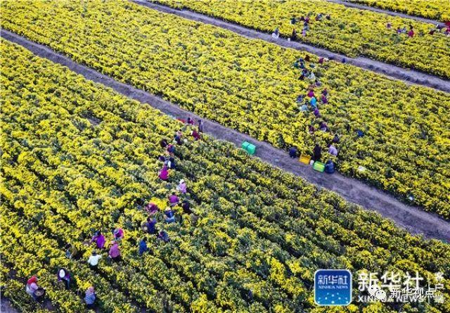 江蘇淮安白馬湖畔,當地農民在采摘菊花(11月12日攝)。據悉,這千余畝菊花所在的白馬湖中草藥養生產業園,是淮安目前最大的菊花種植基地,也是當地政府著力打造的集花卉種植、藥材加工、旅游觀光等功能于一體的現代農業科技園區。新華社記者 李響 攝