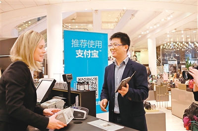 圖為芬蘭最大百貨商場斯托克曼引入支付寶支付作為商場購物支付方式。新華社記者 李驥志攝