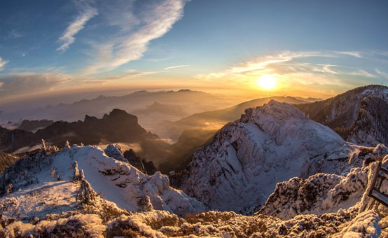 在海拔3100米的神農頂上,白雪、冷杉、草甸、云海構成的畫面,淡到極致、美到窒息。