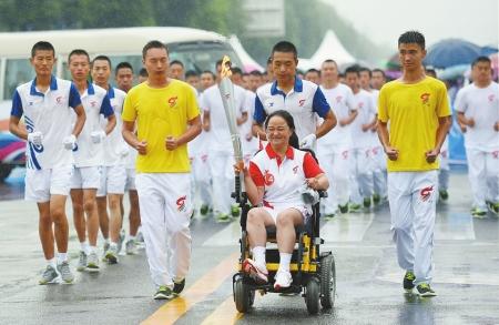 2015年9月8日,成都市雙流,第九屆殘疾人運動會火炬傳遞,圖為火炬手陳媛進行火炬傳遞。 受訪者供圖